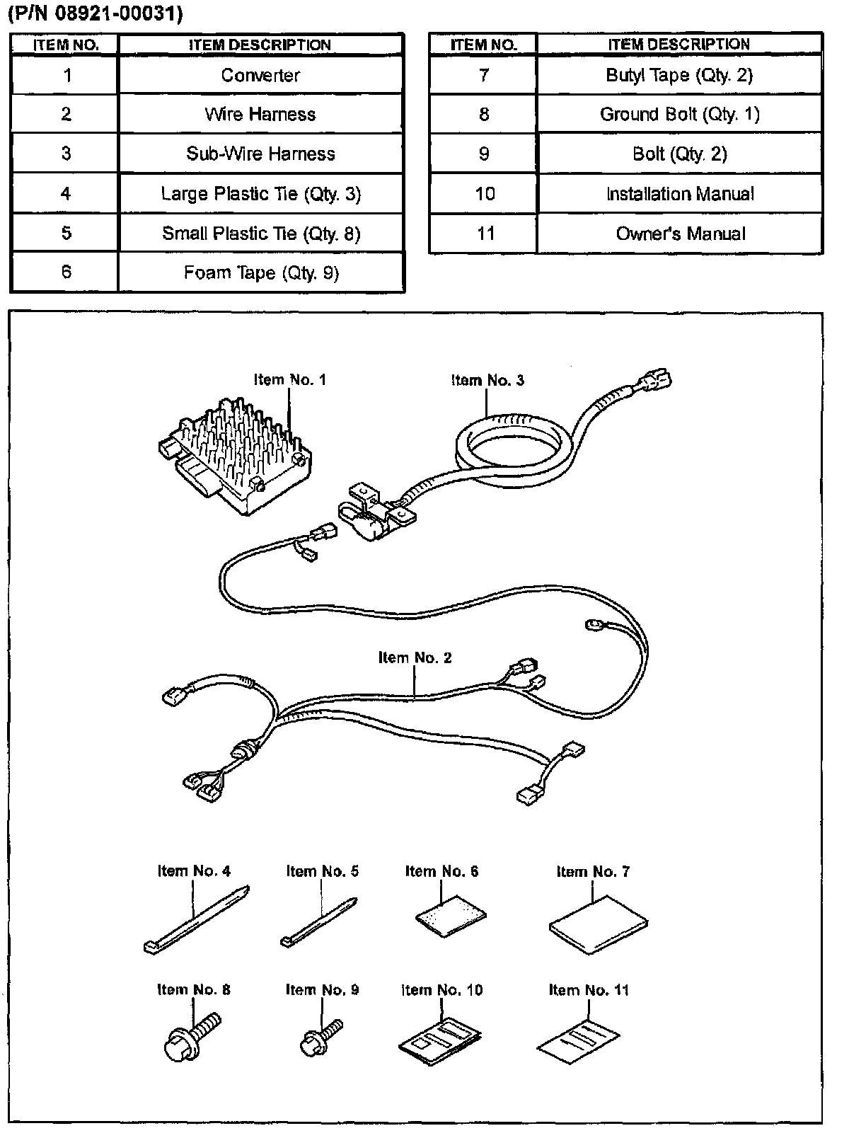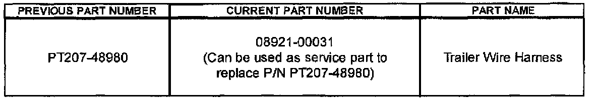 ^ Provide a Parts Description checklist so that the new trailer harness may be identified.
