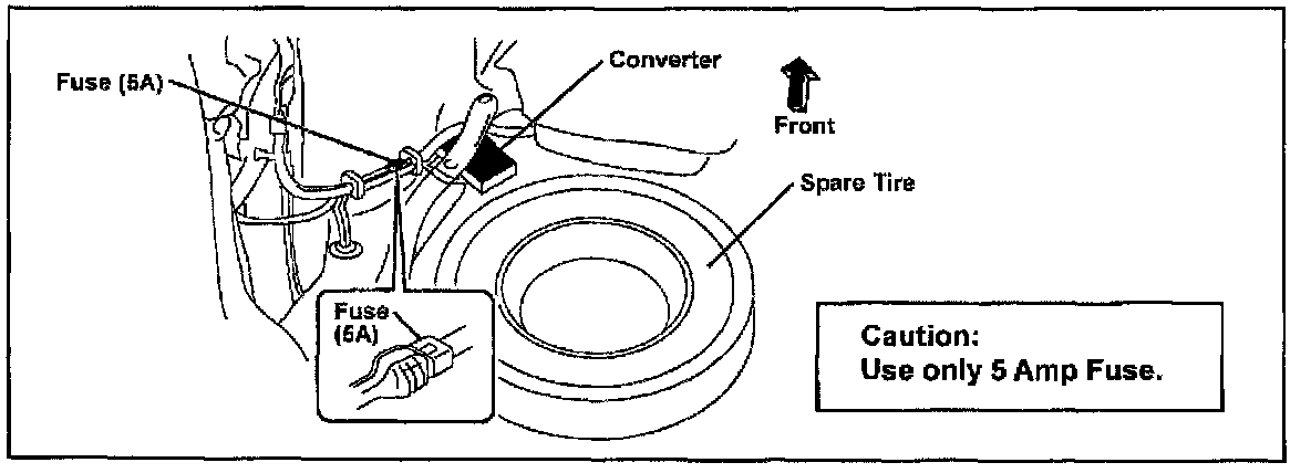 If only the tail lamp at the trailer side is not lit when the tail lamp is turned on, the fuse (5A) in the Trailer Wire Harness could be blown out. In this case, carry out exchange of fuse