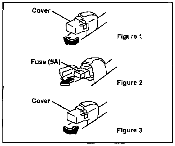 3. Install the fuse (new) to the fuse case, and close the cover of the fuse case. (See Figure 3.)
