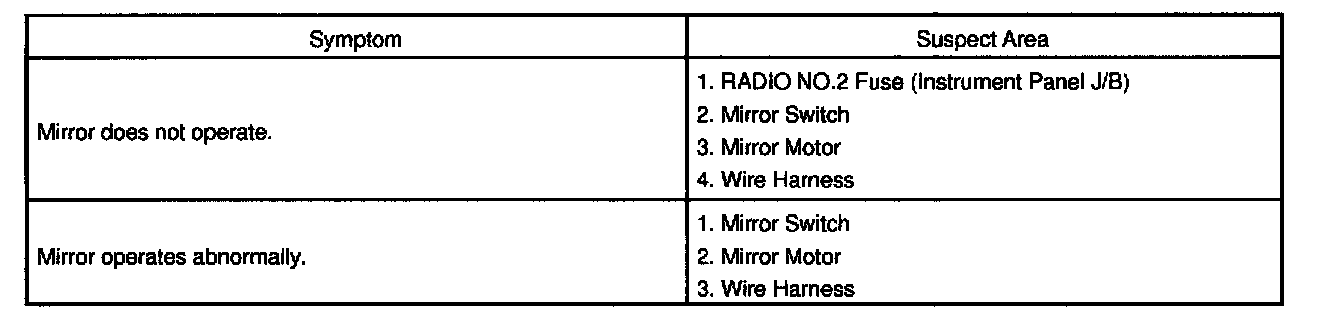 The table will be useful for you in troubleshooting these electrical problems. The most likely causes of the malfunction are shown in the order of their probability. Inspect each part in the order shown, and replace the part when it is found to be faulty.