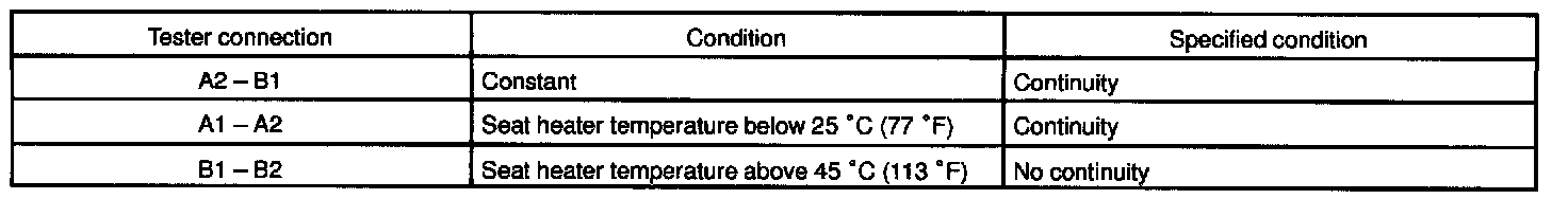 Inspect the seat heater inner cushion and front cushion continuity between terminals, as shown.