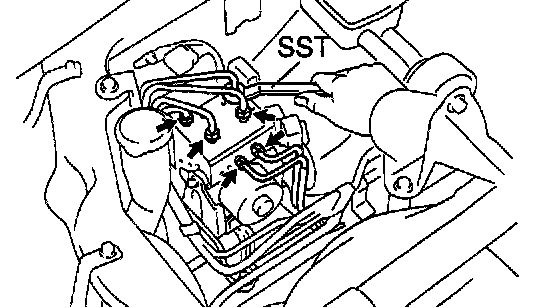 Using SST, disconnect the 6 brake lines from the ABS & TRAC actuator assembly.