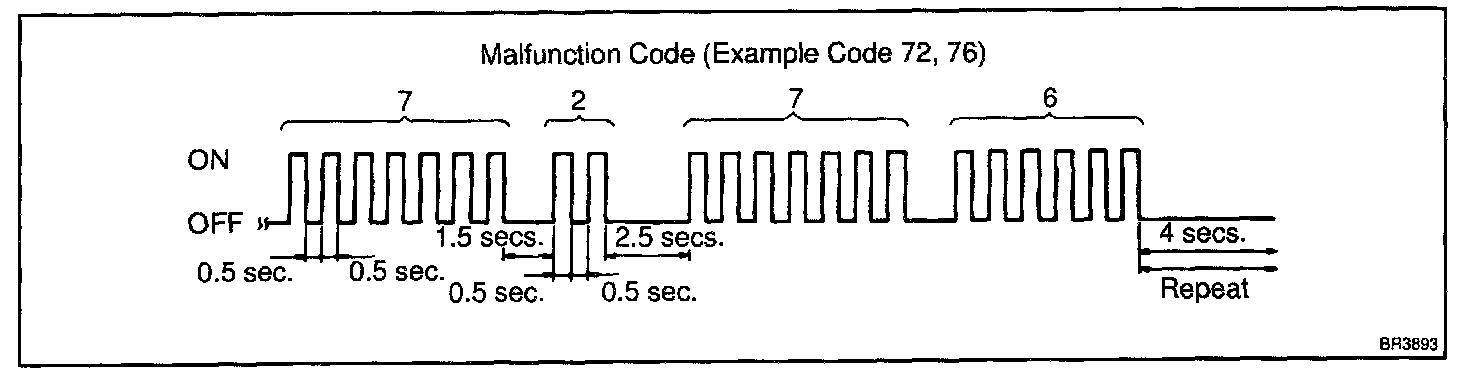 - If every sensor is normal, a normal code is output (A cycle of 0.25 sec. ON and 0.25 sec. OFF is repeated).