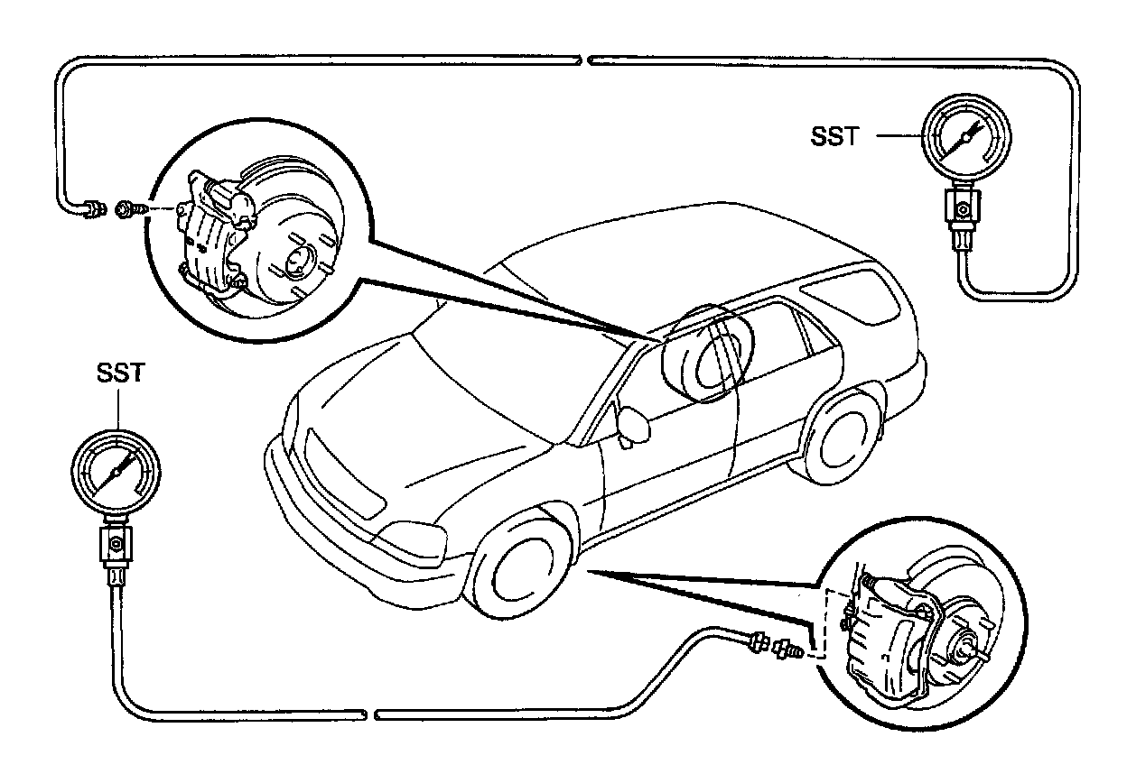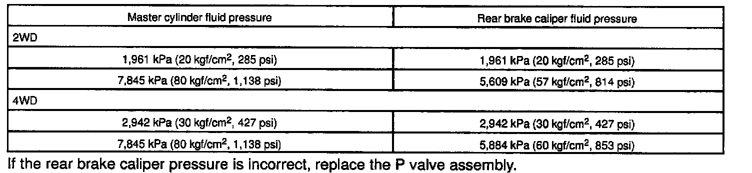 3. RAISE MASTER CYLINDER PRESSURE AND CHECK REAR CALIPER PRESSURE
