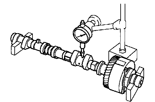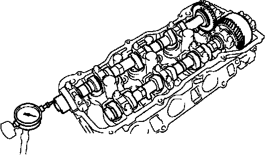 b. Using a dial indicator, measure the thrust clearance while moving the camshaft back and forth.