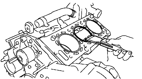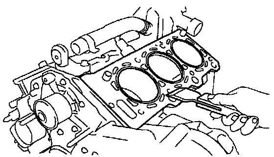 Using a gasket scraper, remove all the gasket material from the cylinder block contact surface.