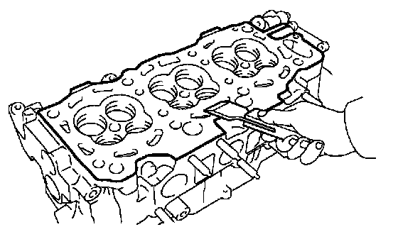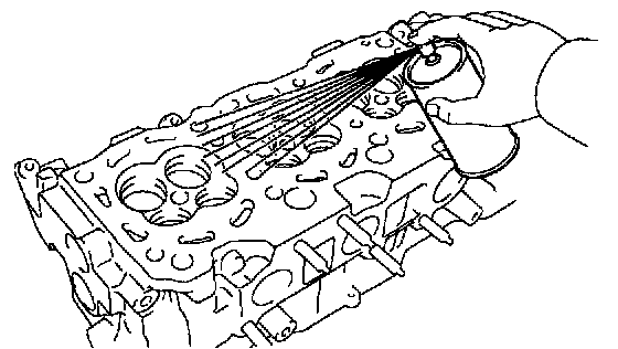 Using a dye penetrant, check the combustion chamber, intake ports, exhaust ports and cylinder block surface for cracks. If cracked, replace the cylinder head.