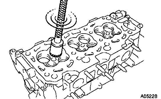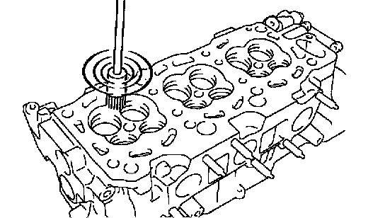 g. Using a sharp 55 mm reamer, ream the guide bushing to obtain the standard specified clearance between the guide bushing and valve stem.