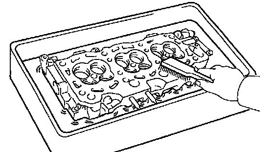 Using a soft brush and solvent, thoroughly clean the cylinder head.