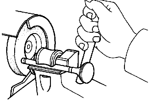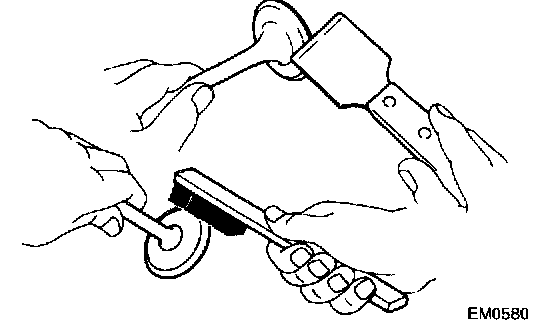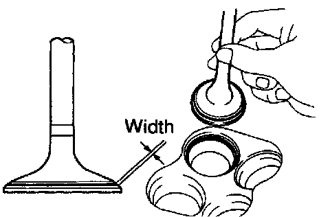 b. Check the valve seating position. Apply a light coat of prussian blue (or white lead) to the valve face. Lightly press the valve against the seat. Do not rotate valve.