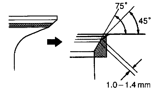 - If the seating is too low on the valve face, use 75° and 45° cutters to correct the seat.