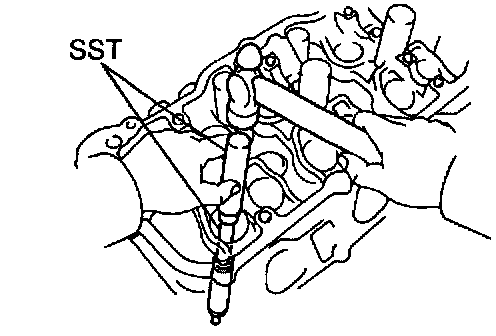 HINT: In case of having difficulty to remove VVT-i, apply a slight hitting using a plastic-faced hammer and then remove it.