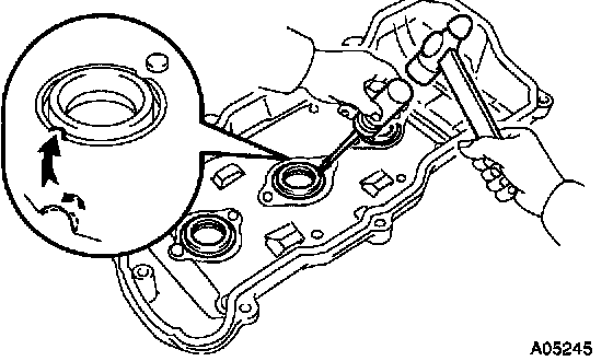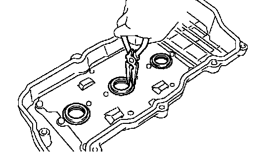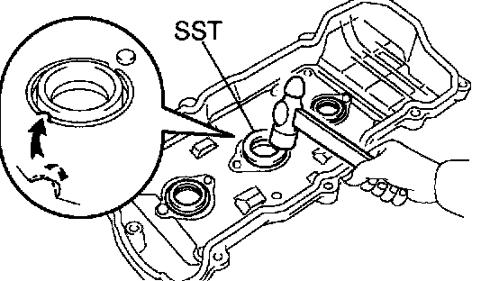 d. Using SST and a hammer, tap in a new gasket until its surface is flush with the upper edge of the cylinder head cover.