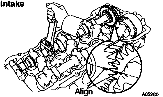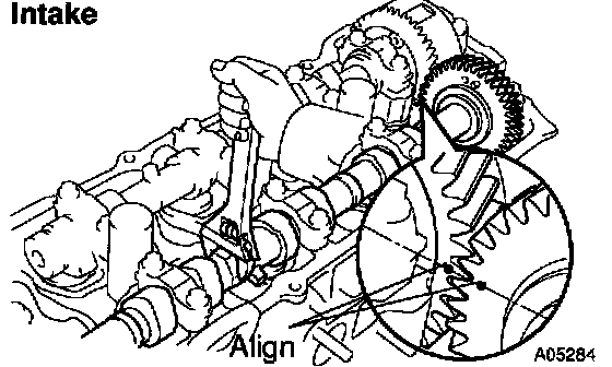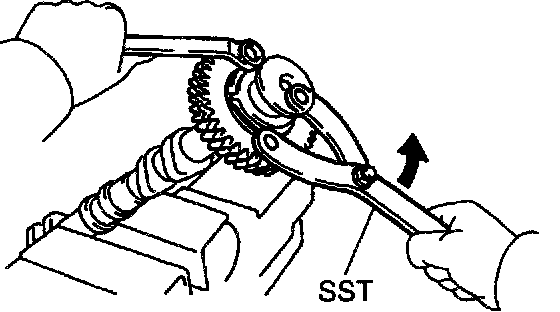 HINT: When removing the camshaft, mark certain that the torsional spring force of the sub-gear has been eliminated by the above operation.