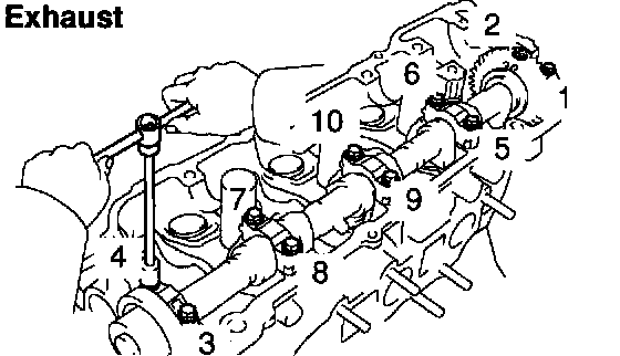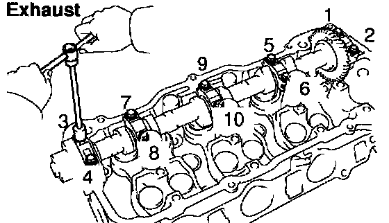 2. Remove the 5 bearing caps, oil seal and exhaust camshaft.
