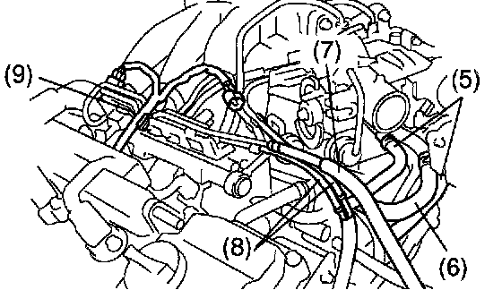 c. Remove the 9 bolts, 2 nuts, 2 plate washers, the intake manifold, delivery pipes and injectors assembly.