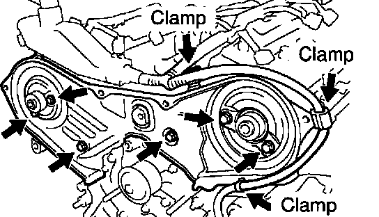 a. Disconnect the 3 engine wire clamps from the timing belt cover.