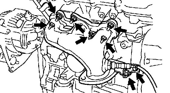 c. Remove the 6 nuts, exhaust manifold and gasket.