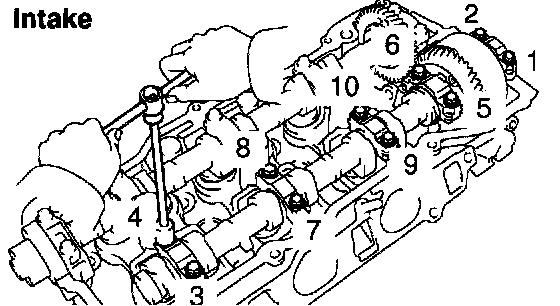 b. Uniformly loosen and remove the 10 bearing cap bolts, in several passes, in the sequence shown.
