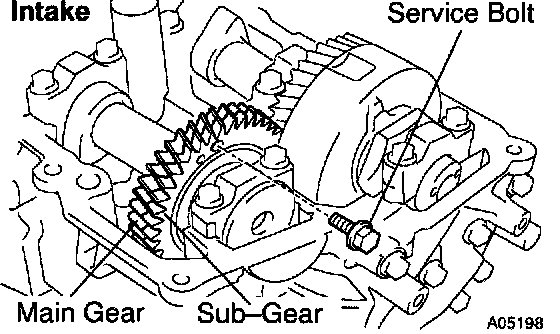 2. Secure the exhaust camshaft sub-gear to the main gear with a service bolt.