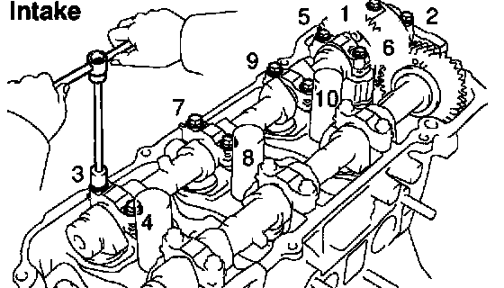 1. Uniformly loosen and remove the 10 bearing cap bolts, in several passes, in the sequence shown.