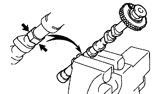 NOTICE: Since the thrust clearance of the camshaft is small, the camshaft must be held level while it is being removed. If the camshaft is not kept level, the portion of the cylinder head receiving the shaft thrust may crack or be damaged, causing the camshaft to seize or break. To avoid this, the following steps should be carried out.