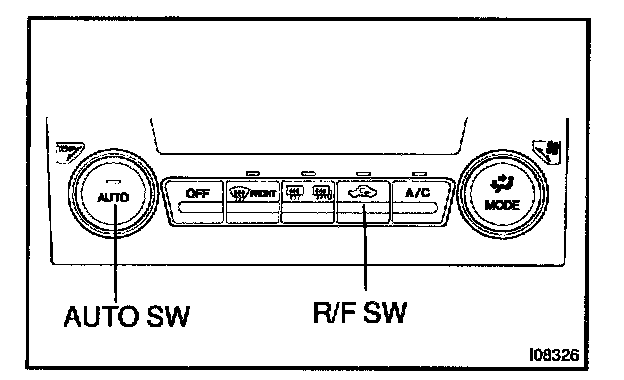 Indicator Checka. Turn the ignition switch on while pressing the A/C control AUTO switch and R/F SW simultaneously.