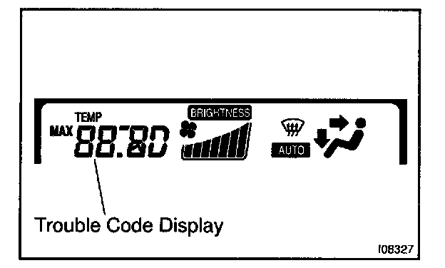 b. Read the DTC displayed on the panel. Refer to the list of DTCs when reading the DTCs. Diagnostic Trouble Code Descriptions(DTCs are out put at the temperature display.) If the slower display is desired, press the Driver Side Temp. Control Switch and change it to step operation. Each time the Driver Side Temp. Control switch is pressed, the display changes by 1 step.