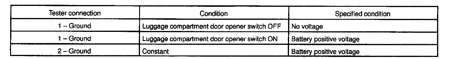 If the circuit is not as specified, inspect power source or wire harness.