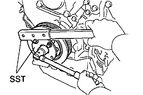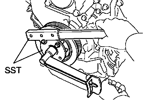 b. Using SST, remove the crankshaft timing pulley.
