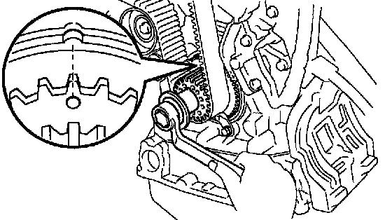 b. Crankshaft Timing Pulley Position: Turn the crankshaft, and align the timing marks of the crankshaft timing pulley and oil pump body.