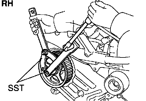 b. Using SST, remove the LH timing pulley.
