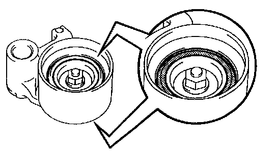 a. Visually check the seal portion of the tensioner for oil leakage.