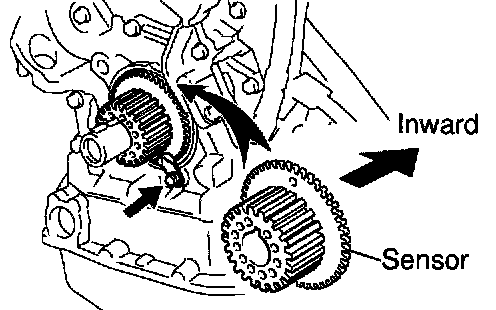NOTICE: Do not scratch the sensor part of the crankshaft timing pulley.
