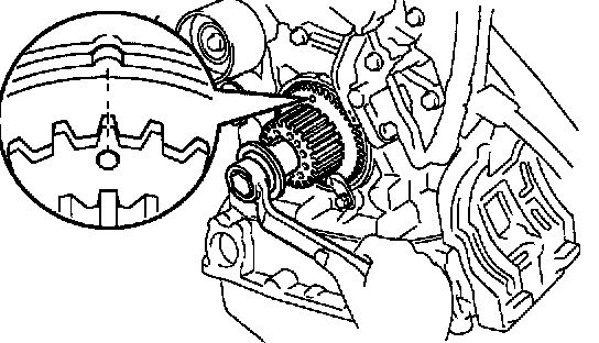 b. Turn the crankshaft, and align the timing marks of the crankshaft timing pulley and oil pump body.