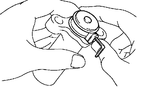b. Hold the tensioner with both hands and push the push rod strongly as shown to check that it doesn't move. If the push rod moves, replace the tensioner.