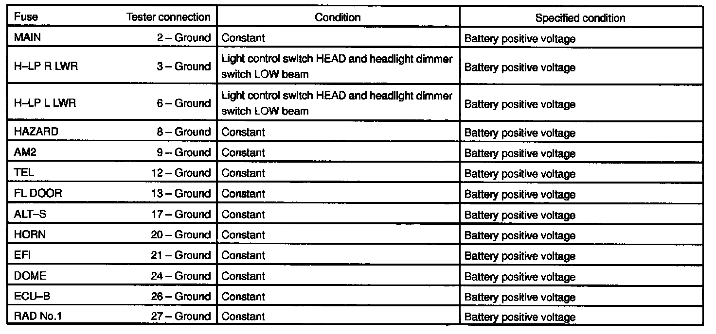 INSPECT ENGINE ROOM JUNCTION BLOCK CIRCUIT