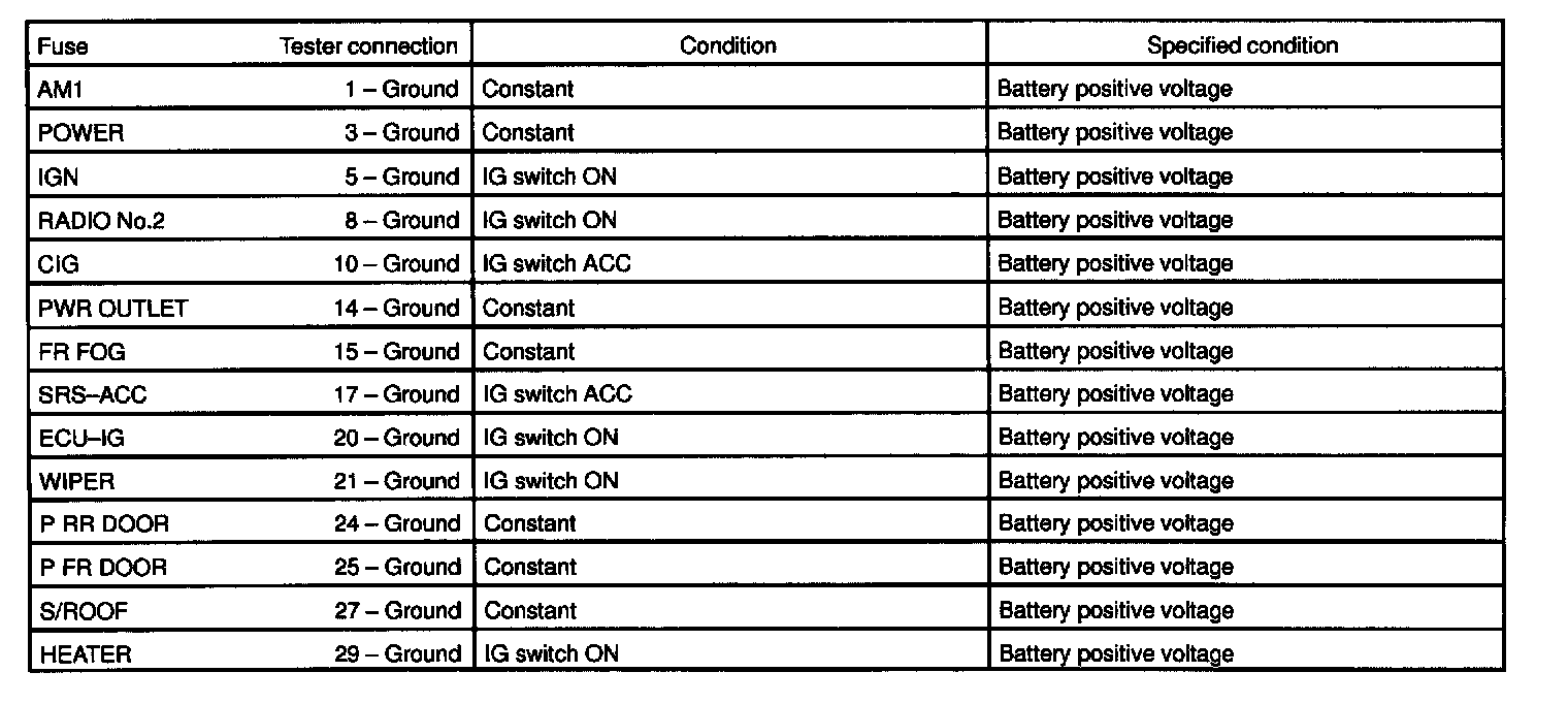 a. Remove the fuse from the instrument panel junction block and inspect the connector on the junction block side.