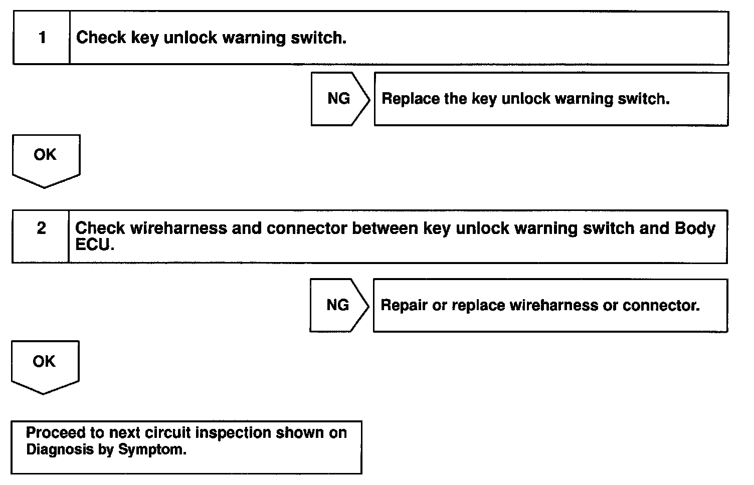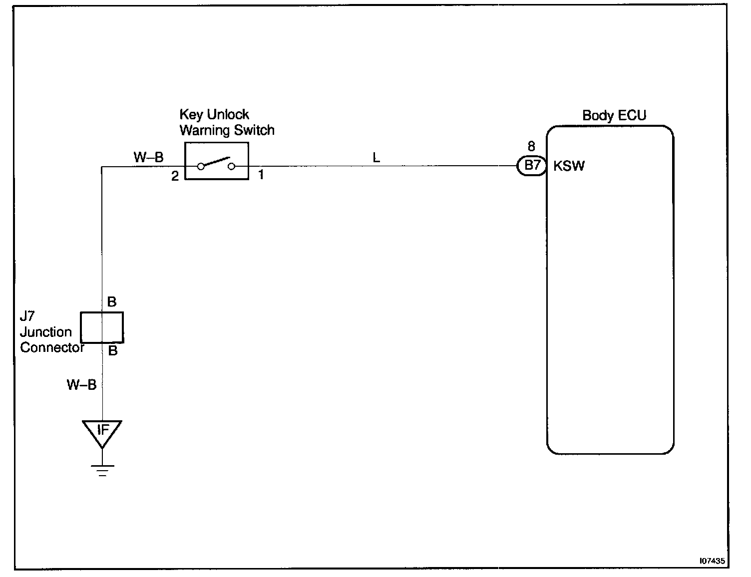 The key unlock warning switch goes on when the ignition key is inserted in the key cylinder and goes off when the ignition key is removed.