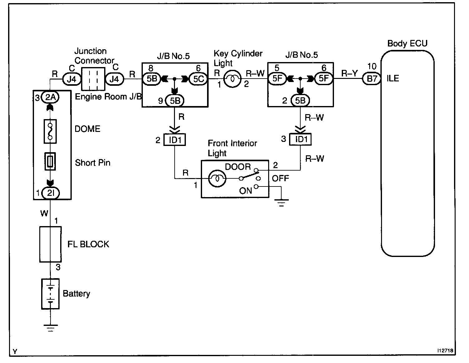 Receiving the courtesy signal from either of the door ECU, the Body ECU will make the front interior light and ignition light, come on.