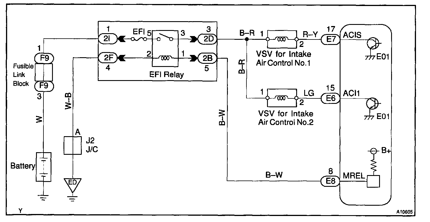 This circuit opens and closes the Intake Air Control Valve (IACV) in response to the engine load in order to increase the intake efficiency (ACIS: Acoustic Control Induction System).
