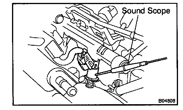 b. Use a sound scope to check for injector operating noise.