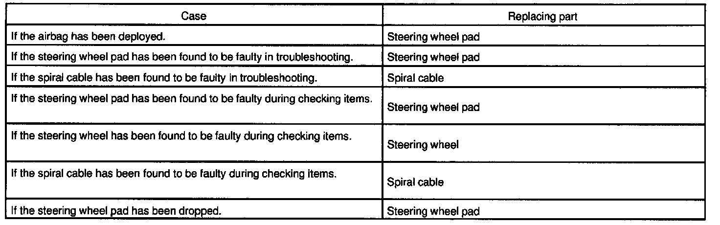 In the following cases, replace the steering wheel pad, steering wheel or spiral cable.