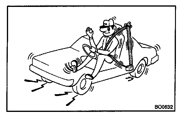 b. Drive the car at 10 mph (16 km/h) and slam on the brakes.Check that the belt locks and cannot be extended at this time.