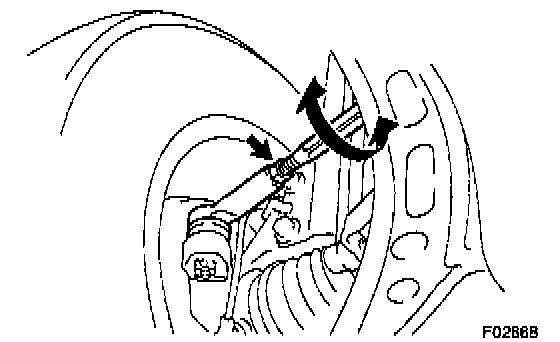 b. Remove the 2 nuts on the lower side of the shock absorber.