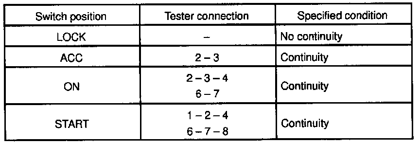 INSPECT IGNITION SWITCH CONTINUITY