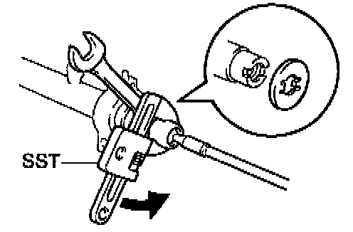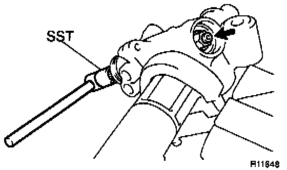 b. Using a spanner (24 mm), hold the steering rack steadily and using SST, torque the rack end.