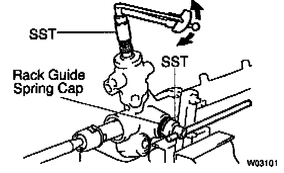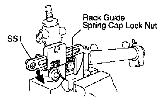 e. Using SST, loosen the cap until the rack guide spring is not functioning.