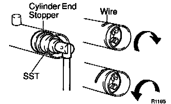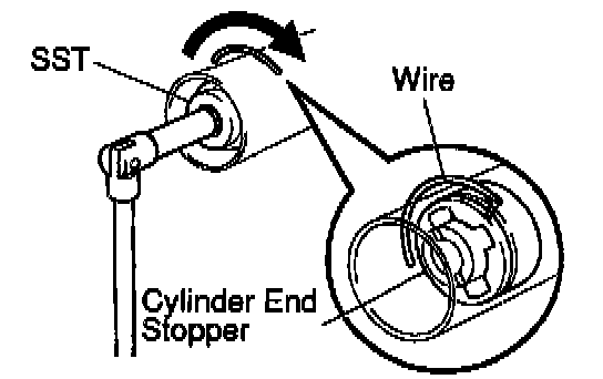 a. Using SST, turn the stopper clockwise until the wire end is visible through the service hole.