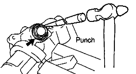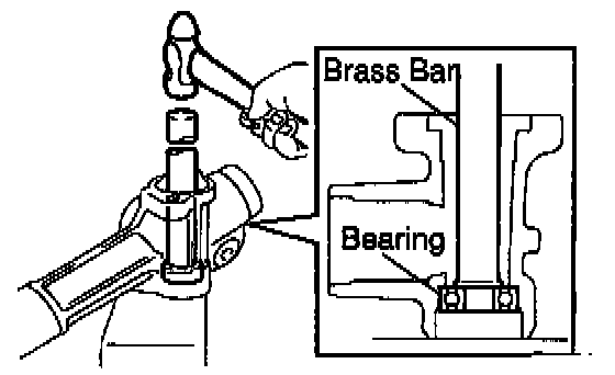 a. Using a brass bar and hammer, tap out the bearing from the rack housing.